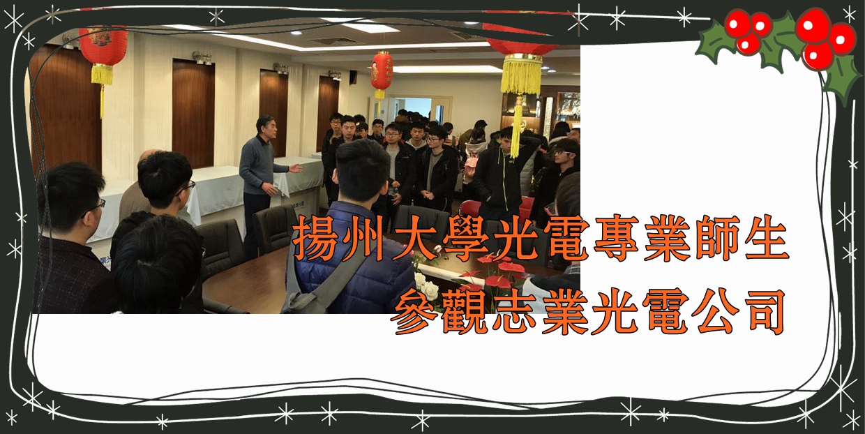 2017年3月9日,古城金陵莺飞草长,正是早春时节。扬州大学光电学院的同学在扬州大学光电学院院长、江苏省光学学会理事韩玖荣先生带领下来南京志业光电精密技术有限公司参观访问。